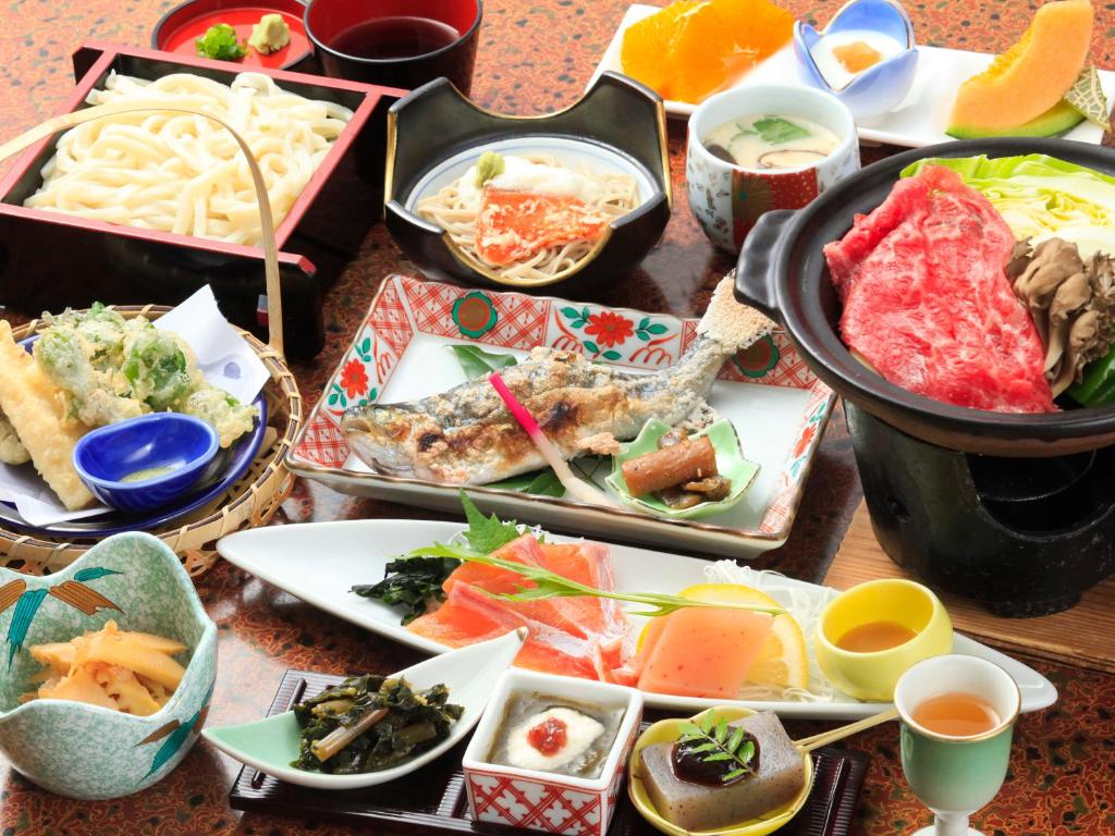 The spacious family room provides air conditioning, tatami, as well as a private bathroom featuring a bath or a shower and a bidet. The family room features a flat-screen TV, an electric kettle, yukata, heating as well as mountain views. The unit offers 5 futons.