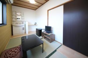 The quadruple room features air conditioning, tatami, as well as a shared bathroom boasting a bath and a bidet. The quadruple room offers an electric kettle, pajamas, heating and a flat-screen TV. The unit has 4 futons.