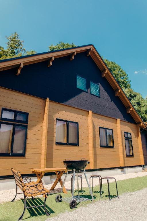 The spacious family room provides air conditioning, tatami, as well as a private bathroom featuring a shower and a hairdryer. Among the room amenities are a private entrance, a tea and coffee maker and a barbecue as well as garden views. The unit offers 5 futons.