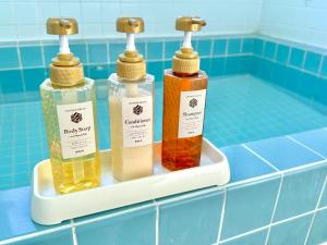 This triple room's standout feature is the hot tub. Offering free toiletries, this triple room includes a shared bathroom with a bath, a bidet and a hairdryer. The triple room offers a flat-screen TV, tatami, a dining area, a wardrobe as well as river views. The unit offers 3 futons.