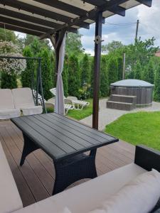 zielony ogród, przestronny taras, słoneczny taras, wyposażenie ogrodowe, kącik piknikowy