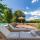 zielony ogród, przestronny taras, słoneczny taras, wyposażenie ogrodowe, kącik piknikowy