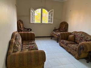 庭の景色を望むFlat in a villageはAsh Sharqia Governorateの‘Ushash Ṭaiyib Salamaにあり、バルコニーを提供しています。この宿泊施設では、テラス、無料専用駐車場、無料WiFiを提供しています。