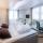 Rooms with modern design, wooden floors, and a stylish bathroom.
