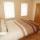 The holiday home has a large modern kitchen with tiled floor and fully fitted with an electric oven, gas hobs, microwave, dishwasher and an American style fridge freezer. A washing machine and tumble dryer is also available. Adjoining the kitchen is a bright and spacious dining room with a wood floor containing a large table with 6 chairs and a flat screen TV. The living room has a large comfortable corner sofa and a large wall mounted flat screen TV.