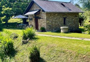 Oferta domu wakacyjnego obejmuje sypialnię (1), kuchnię z pełnym wyposażeniem oraz taras z widokiem na ogród. Telewizor z płaskim ekranem jest dostępny dla gości.