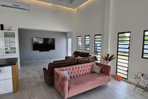 Guests will have a special experience as the villa offers a private pool. Featuring a private entrance, this air-conditioned villa consists of 5 bedrooms and 3 bathrooms with a walk-in shower. Guests can make meals in the kitchen that is equipped with a stovetop, a refrigerator, a dishwasher and kitchenware. Boasting a terrace with garden views, this villa also provides a washing machine and a flat-screen TV with streaming services. The unit offers 5 beds.