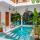 Dieses geräumige, klimatisierte Zweibett- oder Doppelzimmer verfügt über schallisolierte Wände, eine Terrasse mit Poolblick und über ein eigenes Bad mit einer ebenerdigen Dusche.