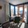 This apartment has a balcony, sofa and marble floor.