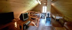 This holiday home's special feature is the fireplace. Featuring a private entrance, this holiday home also comprises 1 living room, 1 separate bedroom and 1 bathroom with a walk-in shower. Guests will find a stovetop, a refrigerator, kitchenware and an electric kettle in the fully equipped kitchen. The holiday home also provides guests with a barbecue. Boasting a terrace with garden views, this holiday home also provides a seating area and a flat-screen TV. The unit offers 4 beds.