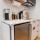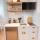 L'angolo cottura comprende frigorifero, microonde e piano cottura, più macchina da caffè e bollitore elettrico.